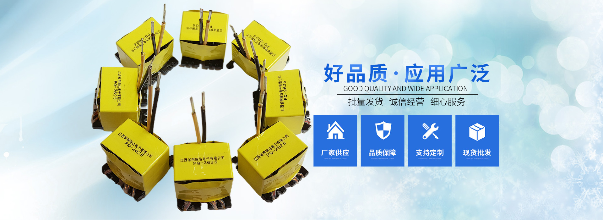 江西省明瑞達(dá)電子有限公司座落于江西省贛州市石城縣,是一家研發(fā)、生產(chǎn)、銷售各種變壓器廠商。生產(chǎn)銷售、技術(shù)服務(wù)、產(chǎn)品研發(fā)為一體的綜合性企業(yè),主要生產(chǎn)、銷售產(chǎn)品:變壓器(EE型、ER型、PQ型、RM型、POT型、UU型、DR型等產(chǎn)品),主要適用于:開(kāi)關(guān)電源、適配器、機(jī)頂盒、液晶電視、空調(diào)、冰箱、LED、電腦、音箱、DVD、飲水機(jī)、電磁爐等各種家用電器及航空、醫(yī)療事業(yè)。
